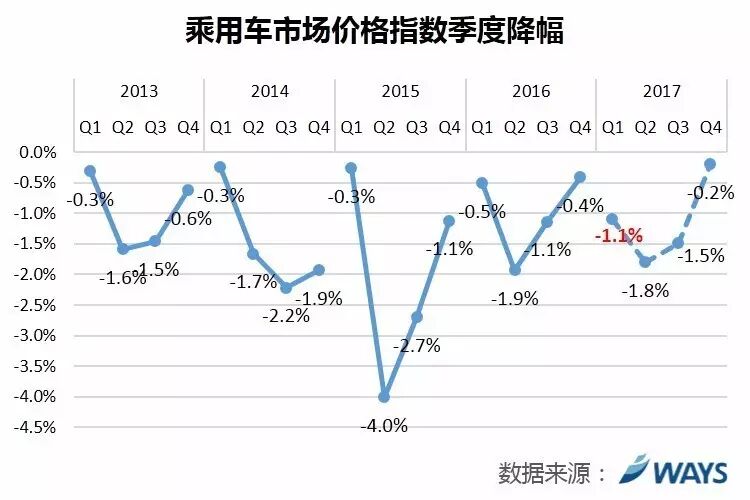 然而,今年年初由于购置税优惠减半的影响,经销商暗补优惠都来不及,还哪敢回收折扣。再加上市场需求较为惨淡,经销商需要以价换量,这也就造就了最大价格降幅的一季度。