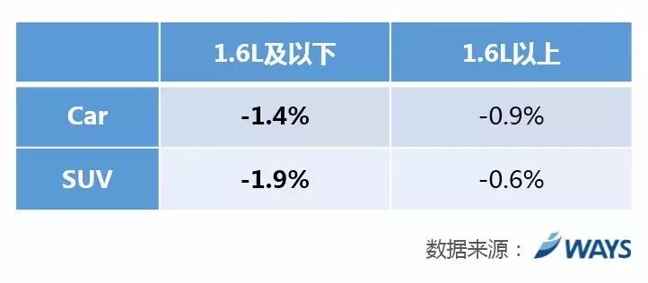 如果将Car与SUV按照“享受购置税补贴与否”分为两类,再分别计算他们的价格降幅,如下图所示: