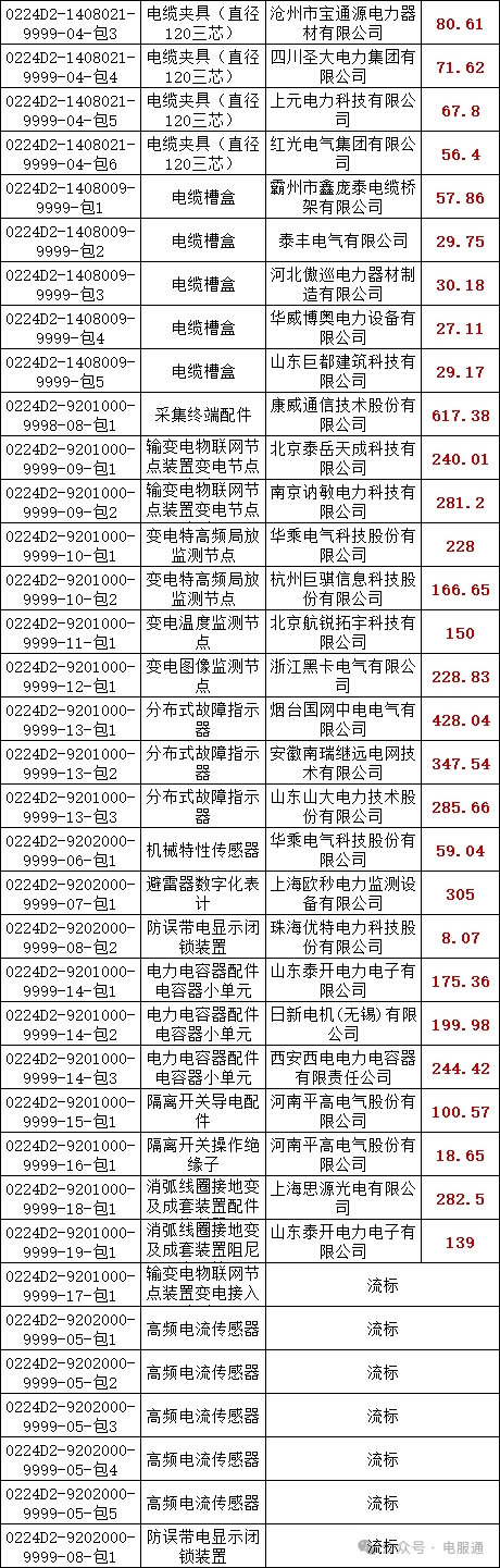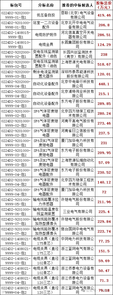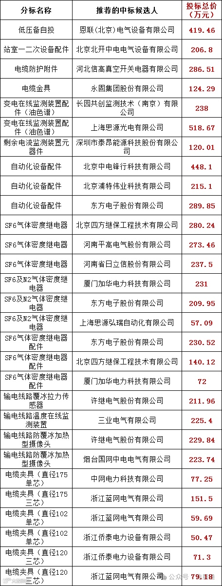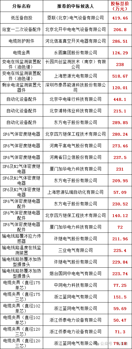 国网北京市电力公司2024年第一次电网零星物资框架招标采购项目评标工作已经结束,依据《中华人民共和国招标投标法实施条例》、《招标公告和公示信息发布管理办法》对中标候选人公示的规定,现将评标委员会推荐的中标候选人予以公示,公示期3日。投标人或者其他利害关系人若对评标结果有异议的,请在中标候选人公示期间以书面形式(扫描件)提出。