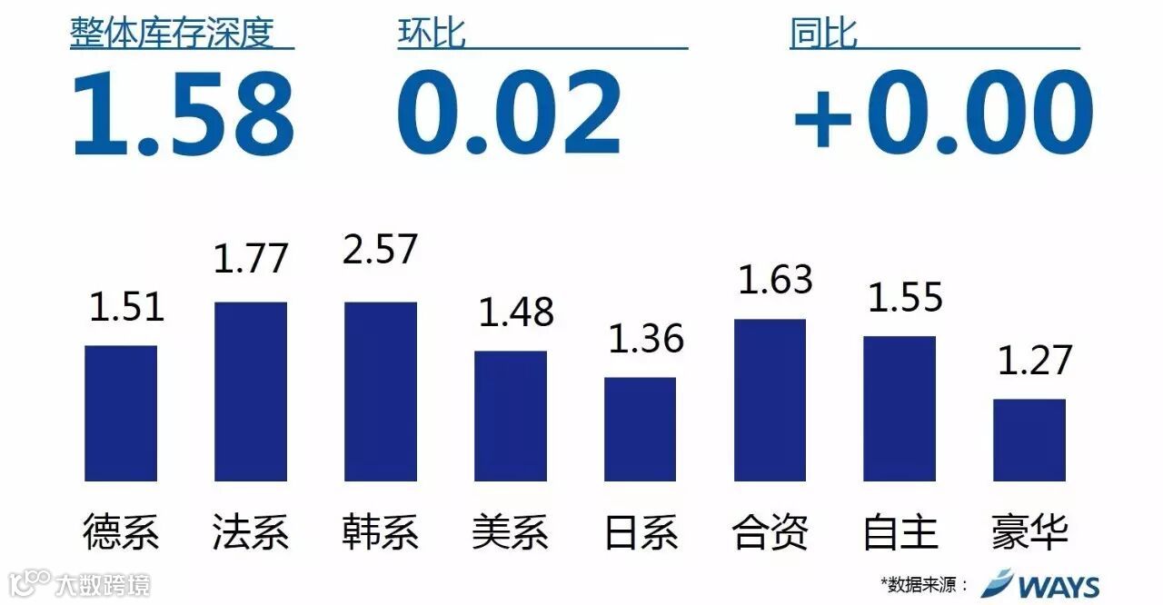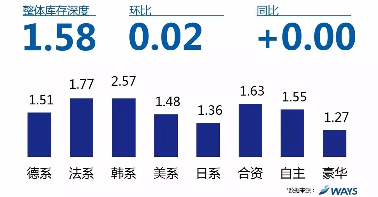 根据威尔森市场监测数据,6月经销商整体库存深度为1.58,环比上升0.02,同比上升0.00,经销商库存压力略有增加,与去年同期水平相当。