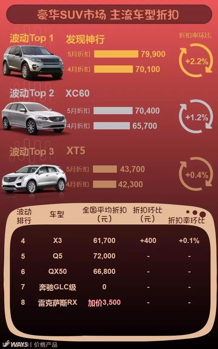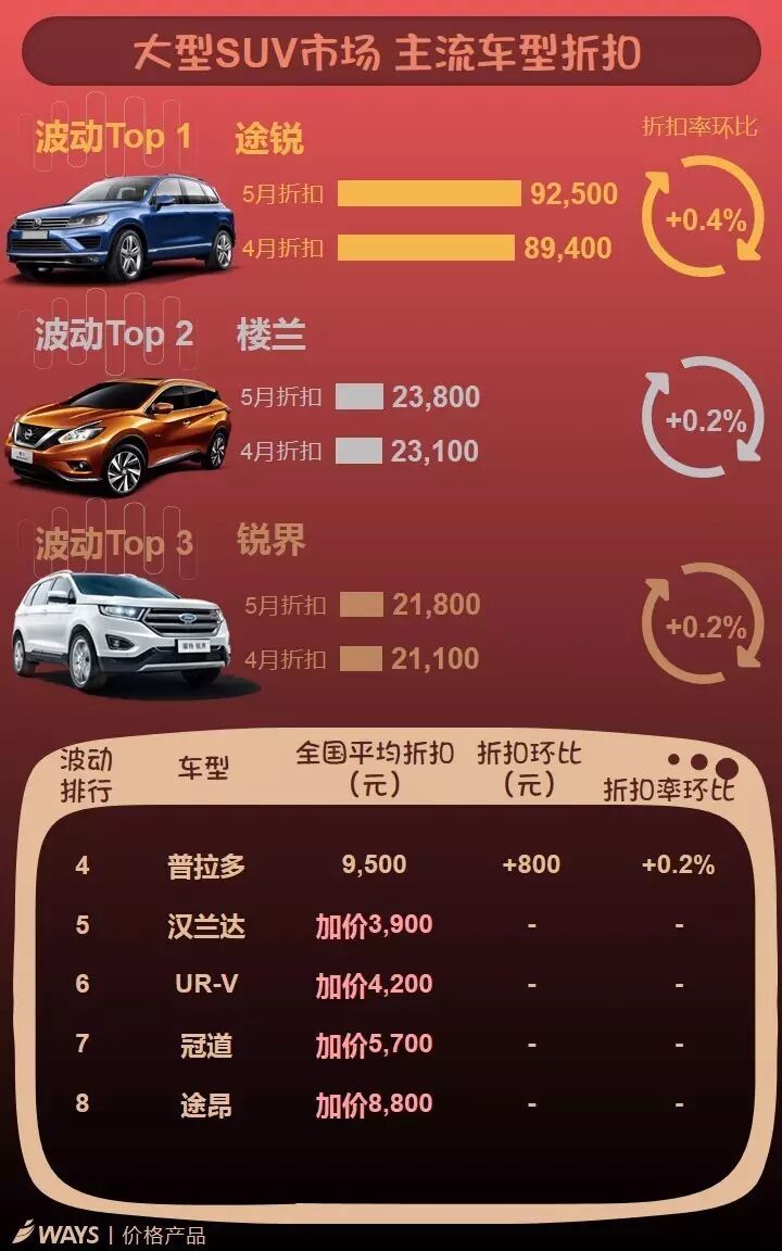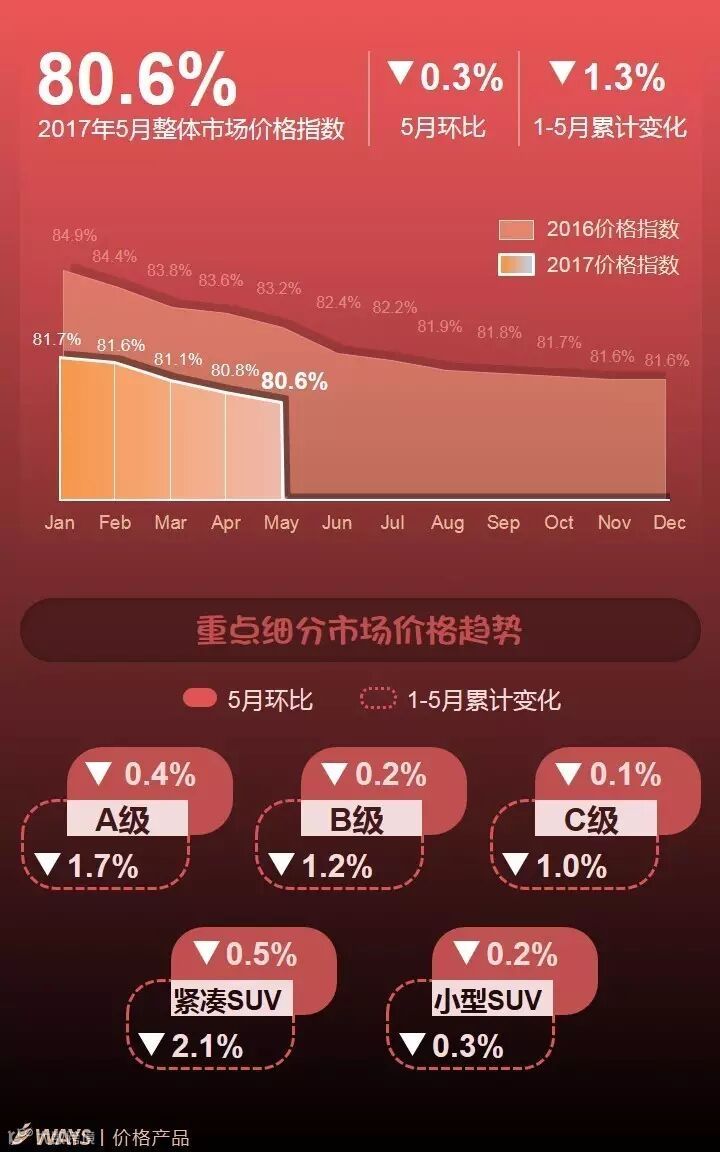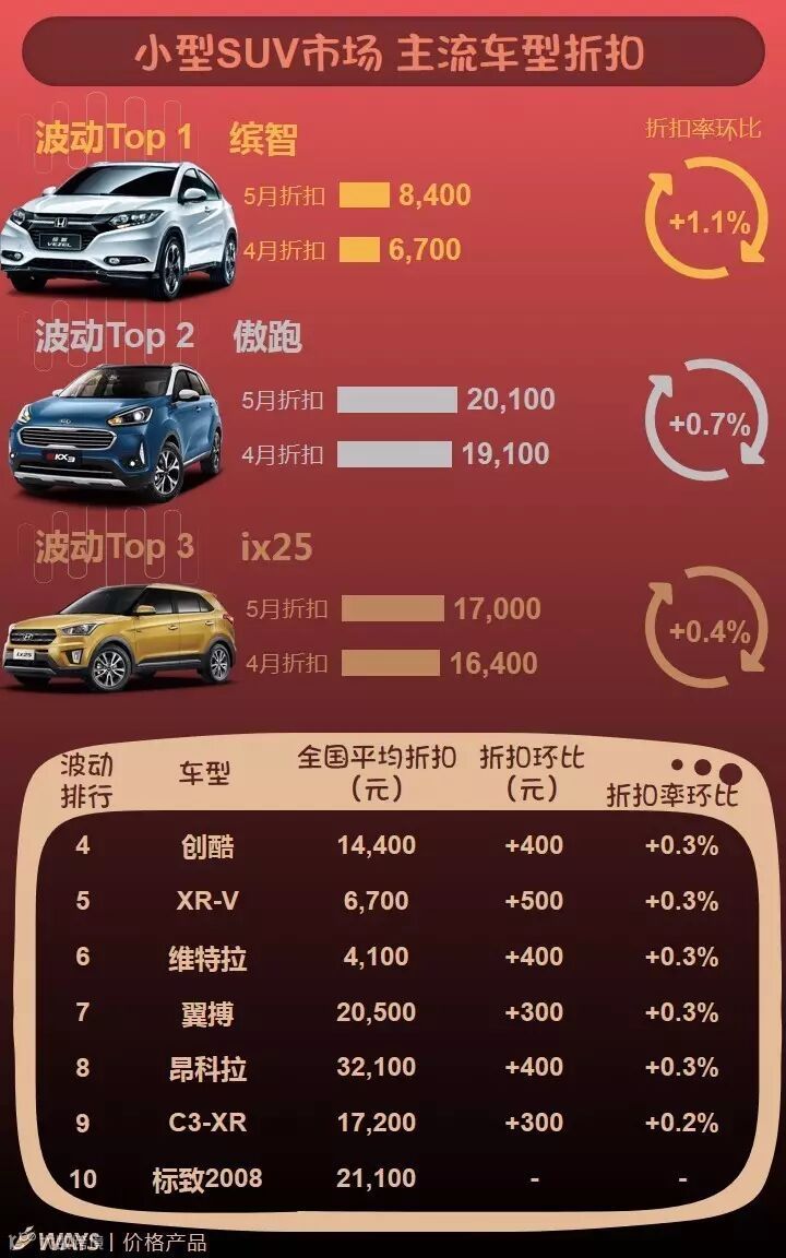 5月上旬,各地经销商借机五一小假期释放优惠来刺激销量,终端市场价格普遍下降,其中,紧凑型SUV和A级轿车下降明显。