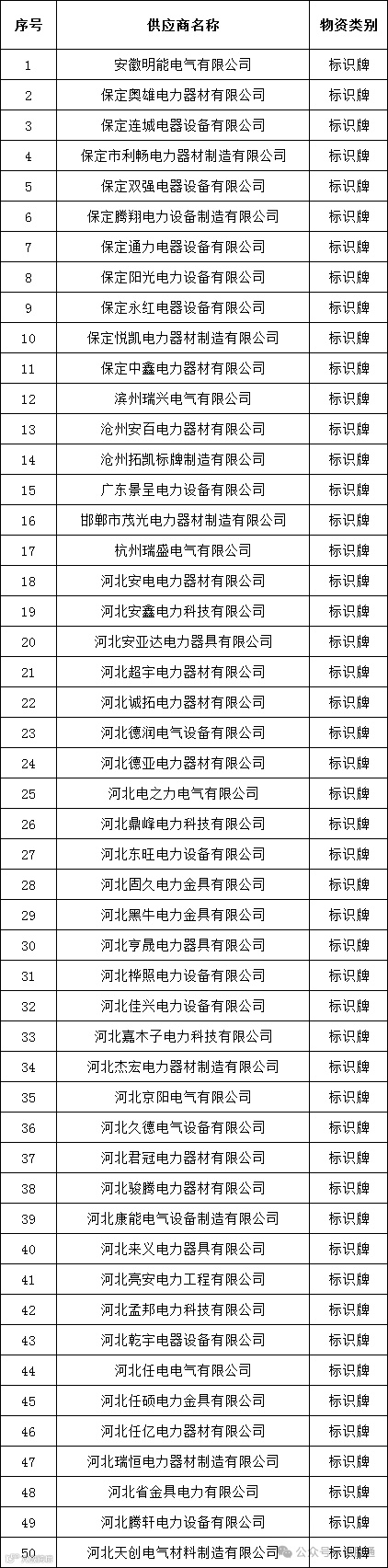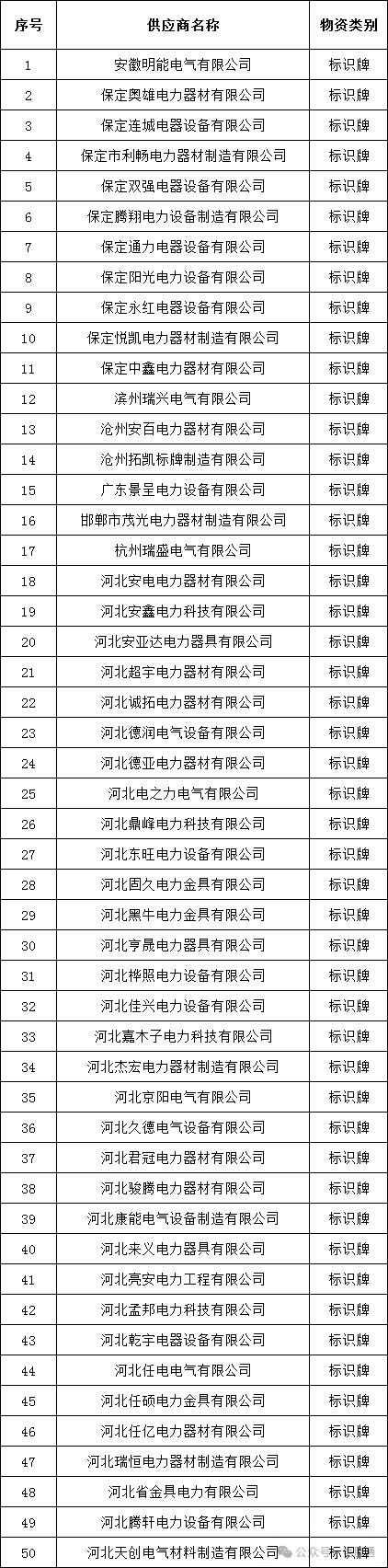 国网冀北电力有限公司组织开展了2024年标识牌供应商资质能力信息核实工作,现将供应商相关信息予以公示。