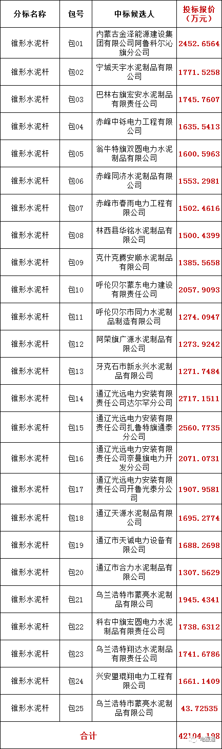 国网内蒙古东部电力有限公司2023年第一次配网水泥杆物资协议库存公开招标采购评标工作已经结束,依据对中标候选人公示的规定,现将评标委员会推荐的中标候选人予以公示,公示期3日。投标人或者其他利害关系人若对评标结果有异议的,请在中标候选人公示期间以书面形式(邮件)提出。