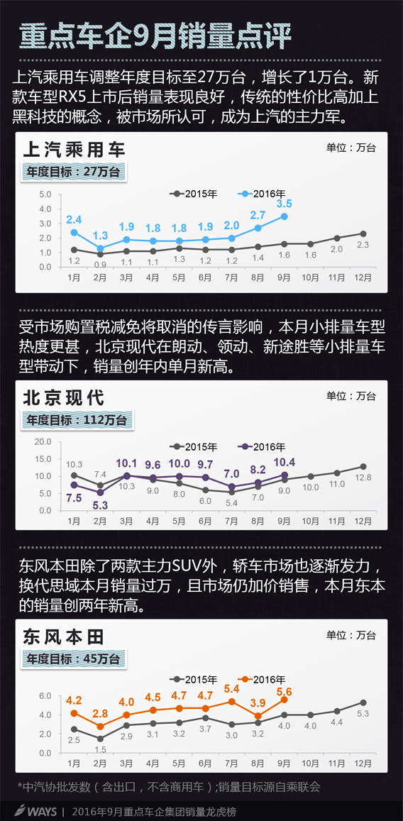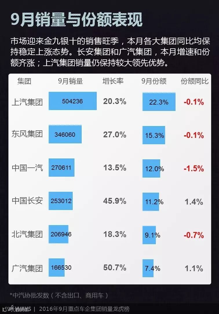 威尔森WAYS市场迎来金九银十的销售旺季,9月各大集团同比均保持稳定上涨态势。长安集团和广汽集团9月增速和份额齐涨;上汽集团销量仍保持较大领先优势。
