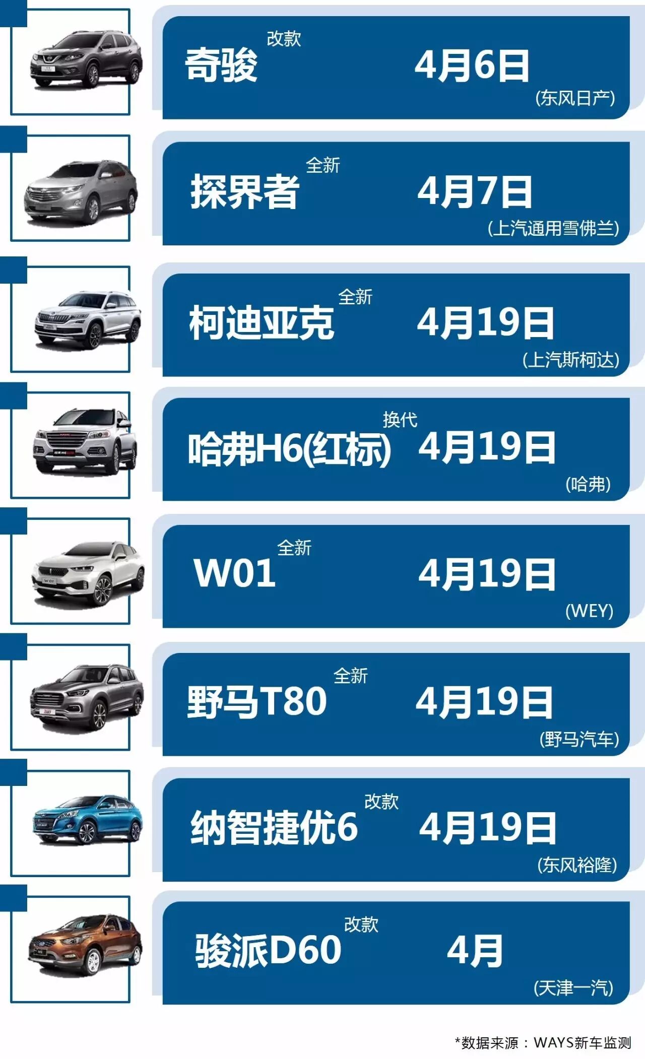 4月重点新车跟踪