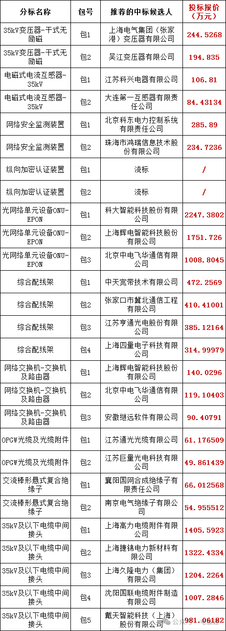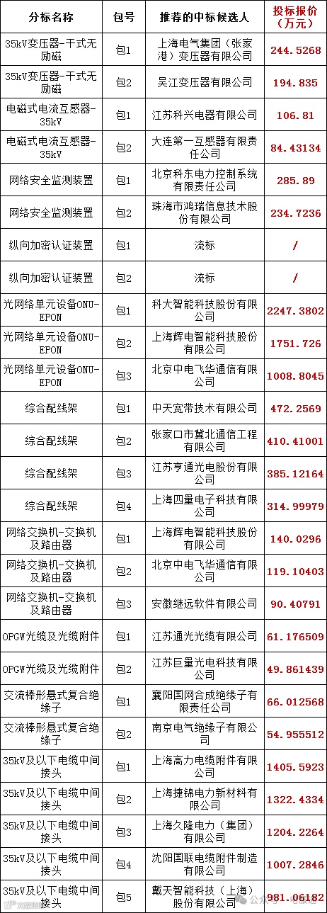国网上海市电力公司2024年第一次配网物资协议库存招标采购评标工作已经结束,依据对中标候选人公示的规定,现将评标委员会推荐的中标候选人予以公示,公示期截止至2024年3月7日15:30。投标人或者其他利害关系人若对评标结果有异议的,请在中标候选人公示期间以书面形式(传真)提出。