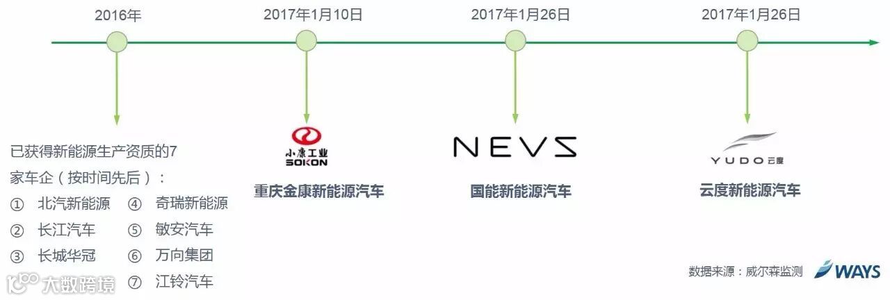 1月份,新增3家企业(重庆金康、国能新能源、云度新能源)获新能源汽车生产资质,已获资质企业总数达10家。