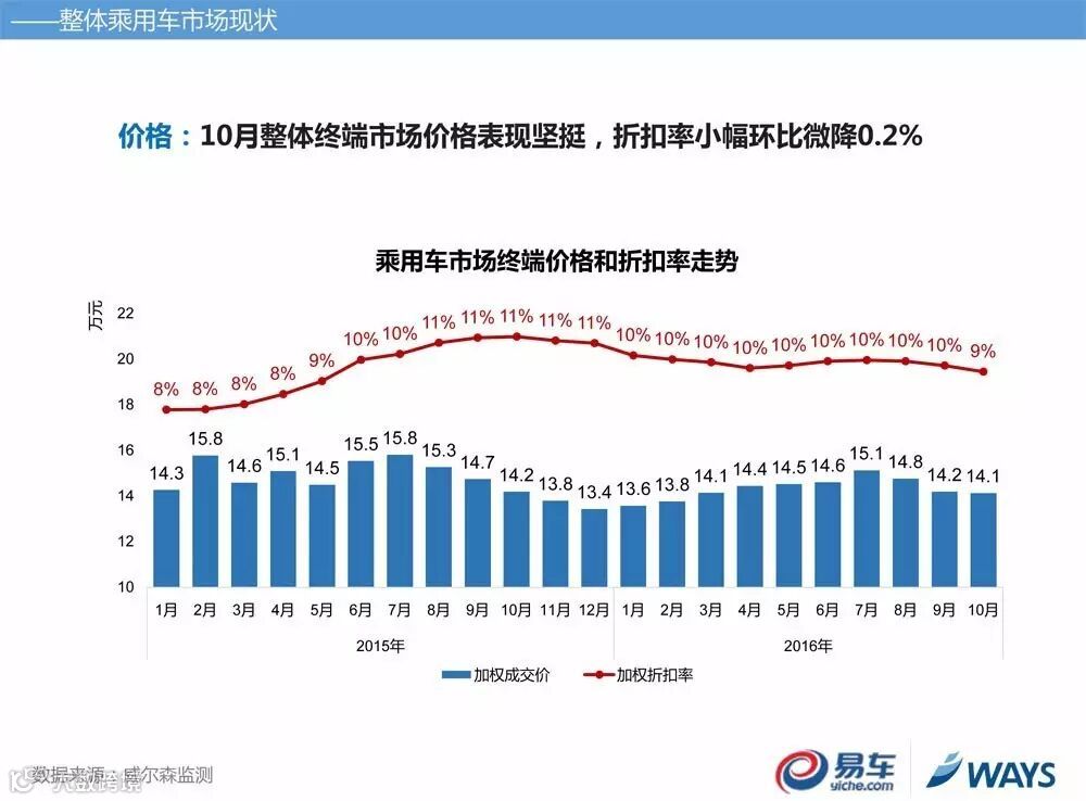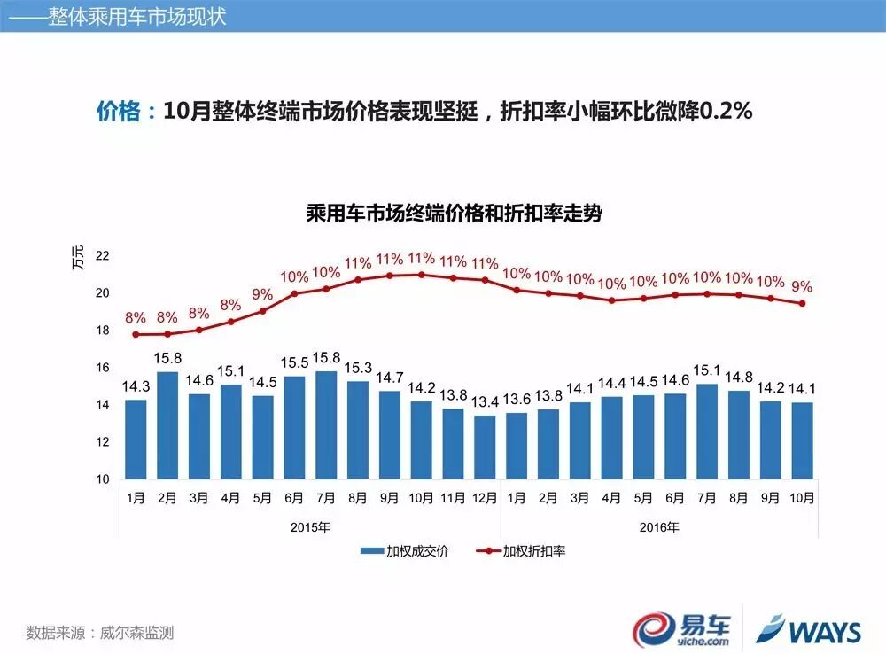 销量持续增加、需求增加,再加上库存的降低,导致各品牌经销商在终端门店减少了优惠力度,乘用车市场折扣率在今年首次出现下降。同时终端成交价格持续,部分原因来自低端价位车成交量占比较高。