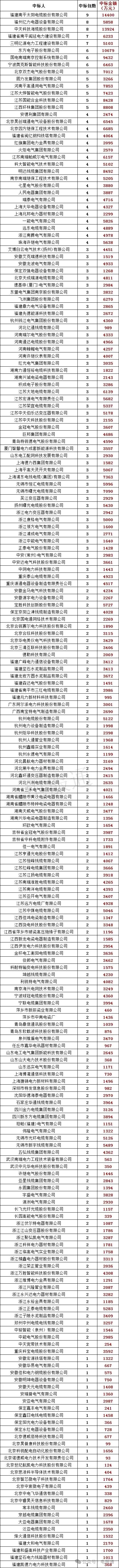 福建南平太阳电缆股份有限公司:中标包数9个,中标金额14399万元,排名第一;