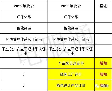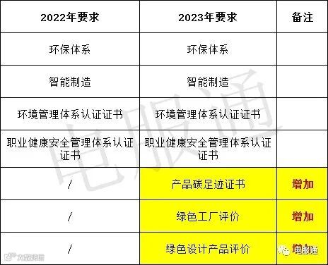 去年此项要求还只有四条,今年增加至七条,增加了产品碳足迹证书、绿色工厂评价、绿色设计产品评价,但从此次调整来看,国家对环保方面越来越重视,各企业也需要考虑增补这方面的认证证书。