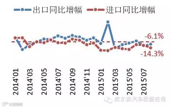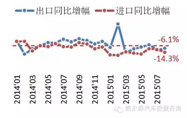 由于大宗商品价格大幅下挫,进口总额降幅扩大;受国际环境和部分车企积极实施本地化生产影响,汽车整车出口出现较大幅度下滑。