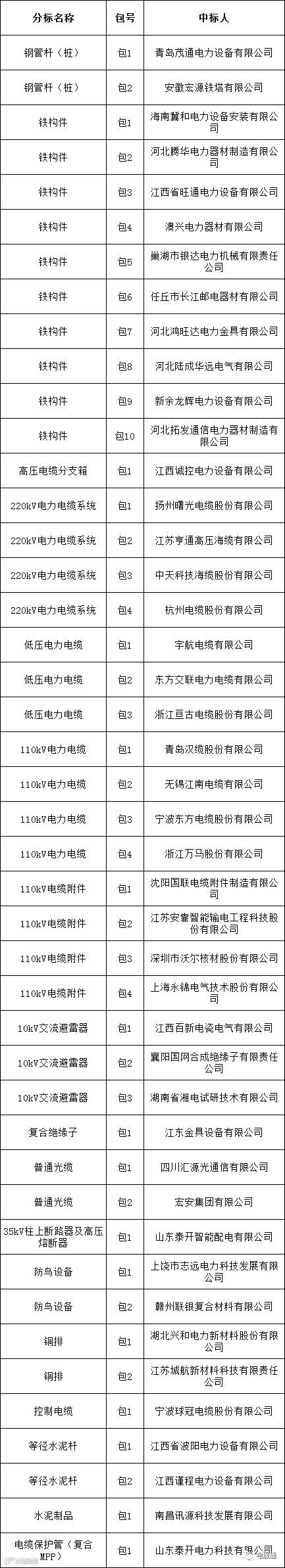 国网江西省电力有限公司2023年第二次配网(省网)协议库存物资公开招标采购项目的中标候选人公示活动已经结束。现将中标人名单及有关事项公告如下: