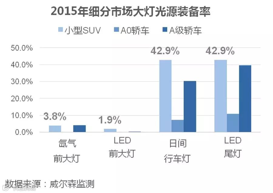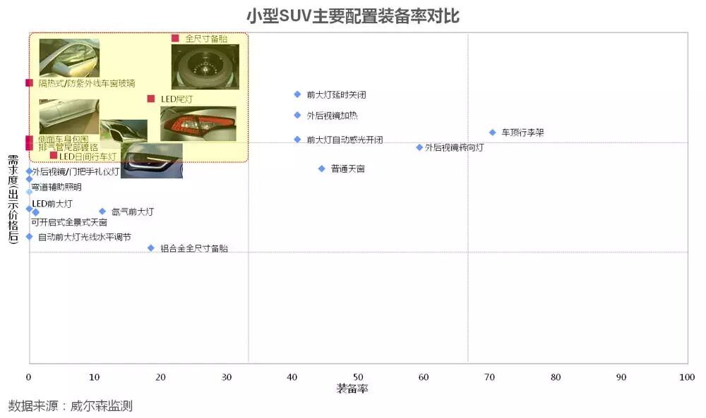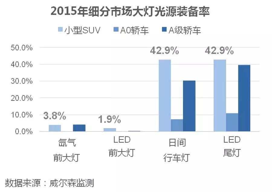【】在上面的消费者调研中提到,车主对外观的重视程度较高,进一步探究可知他们对隐私隔热玻璃、LED尾灯、LED日间行车灯、包围、排气管镀铬等配置需求尤为重视,厂商们在这些方面的表现也没有让人失望,装备率逐渐走高。
