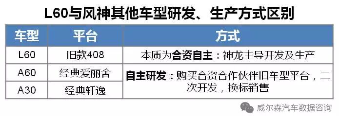 风神L60用自主品牌的LOGO及销售渠道,但与风神其他车型不同的是,L60由神龙开发及生产,本质上为合资自主车型。