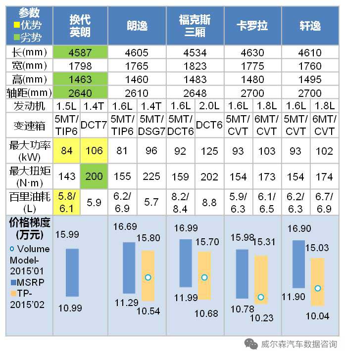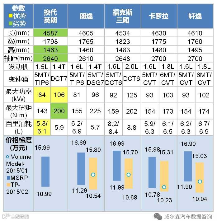 上海通用将英朗竞品锁定为朗逸,并与新福克斯三厢、卡罗拉、轩逸等合资紧凑车形成竞争。