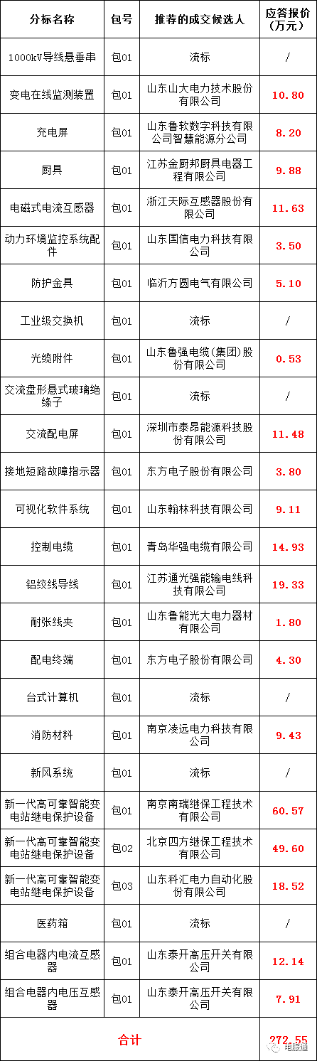 国网山东省电力公司2023年第四次物资公开招标采购项目评标工作已经结束,依据对中标候选人公示的规定,现将评标委员会推荐的中标候选人予以公示,公示期至2023年9月4日12时00分。投标人或者其他利害关系人若对评标结果有异议的,请在中标候选人公示期间以书面形式(传真)提出。