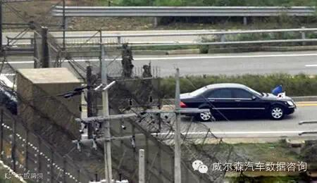 图为2007年10月2日韩国前总统卢武铉的座驾越过朝韩军事分界线的资料照片。韩国总统卢武铉走陆路到平壤参加朝韩高峰会,乘坐的便是一辆奔驰S600豪华防弹车。这款车是韩国总统府「青瓦台」在2002年购买的总统座车,其防弹板用特殊材料制成,即使用军用消防装备进行高压喷射,也会安然无恙。该车的防弹玻璃附有一层聚碳酸酯,火烧也不会变形,车外若发生爆炸,碎片也无法穿透车窗。