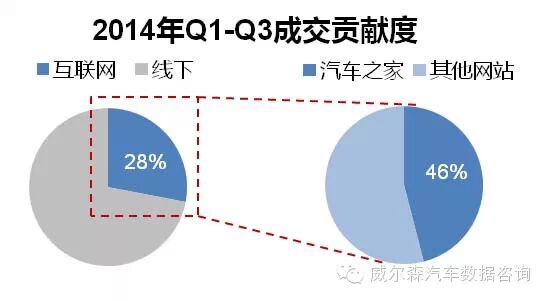 2014年前三季度,互联网对于汽车的成交贡献度已接近三成,其中贡献度最高的网站汽车之家或将成为未来经销商的投放重点。
