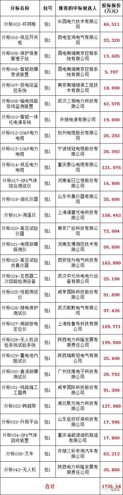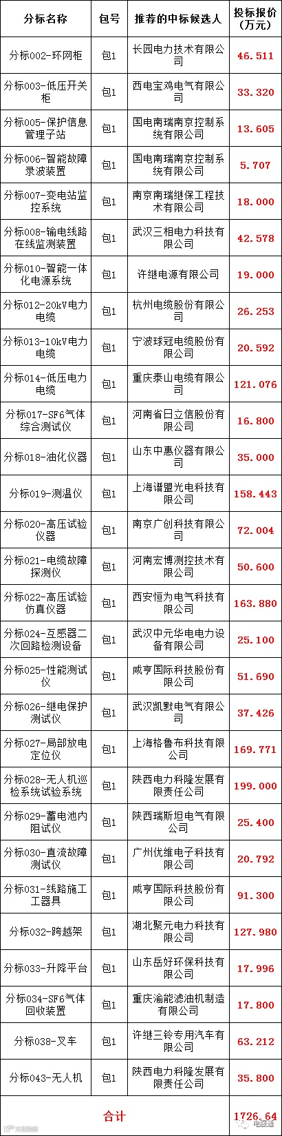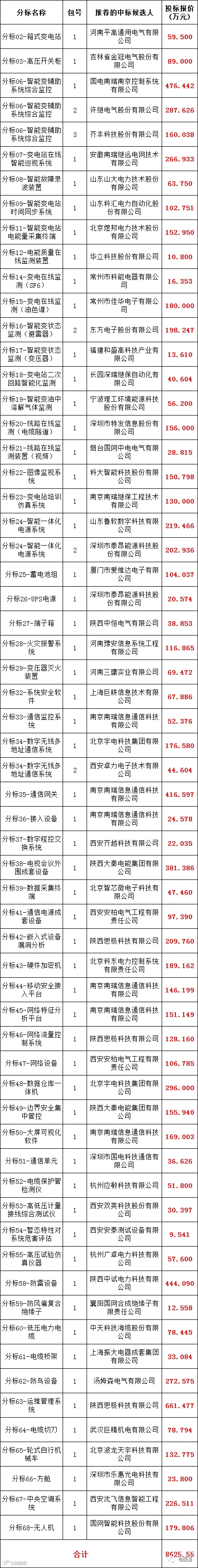 国网陕西省电力有限公司2023年第四次子公司及省管产业单位物资招标采购项目评标工作已经结束,依据对中标候选人公示的规定,现将评标委员会推荐的中标候选人予以公示,公示期3日。投标人或者其他利害关系人若对评标结果有异议的,请在中标候选人公示期间以书面形式(传真)提出。