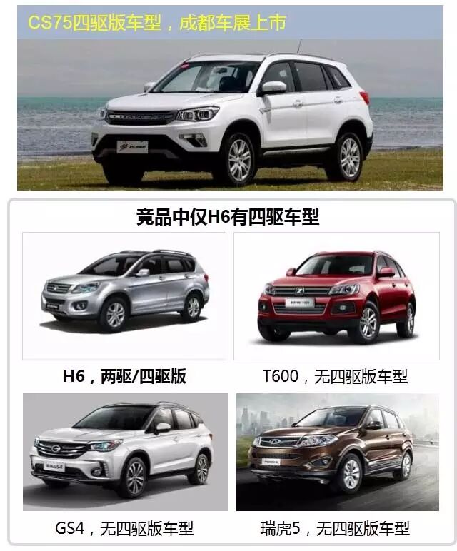 2015年CS75月均销量1.4万辆,表现抢眼,在本次成都车展长安将推出其四驱车型,进一步强化CS75的产品竞争力,其搭载的博格华纳NexTrac智能四驱系统是一大亮点。