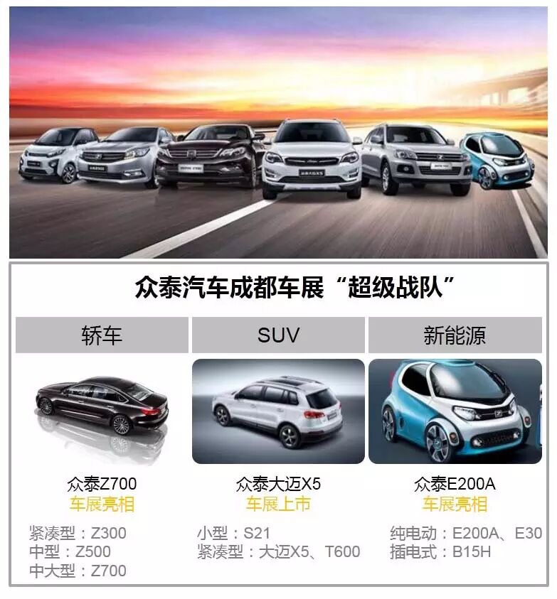 在所有车企中众泰汽车可谓是最重视本次成都车展的厂商。为备战2015成都车展,众泰汽车特意8月21日在北京召开了媒体交流会,届时将携带旗下的全新轿车、SUV、新能源“超级战队”参展。