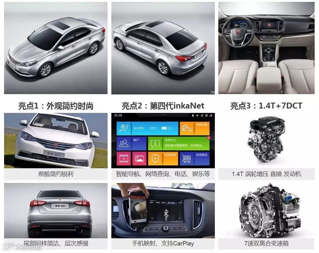 荣威360是上汽集团布局A级车市场的首款“蓝芯”战略车型,定位介于荣威350和荣威550之间,装备车载互联系统inkaNet 4.0 功能丰富多样,此外1.4T+7DCT动力组合也是其一大优势。