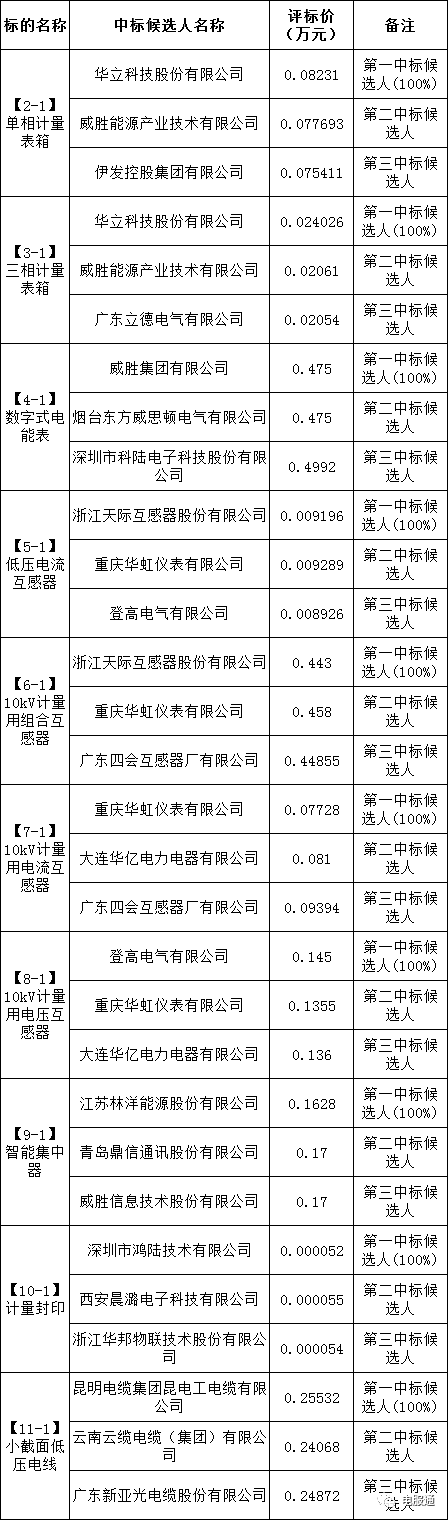 贵州电网有限责任公司2023年第二批省级集中采购物资(营销设备)框架招标经评标委员会评审,现将中标候选人公示如下: