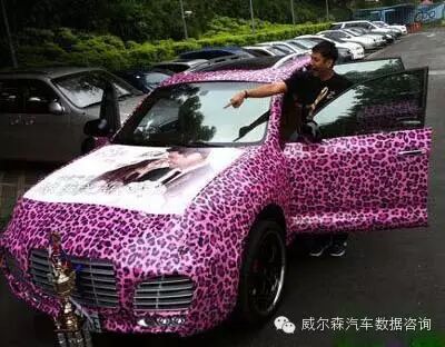 范玮琪与陈建州婚车:保时捷卡宴(改装为粉红色豹纹车)