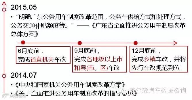 11115月中,首个地方车改方案——广东车改两大方案已获中央车改小组批复,2015年底前全省将全面完成车改。政府发的车改补贴,及车企针对车改颁布的优惠支持,或将拉动公务员私人购车。