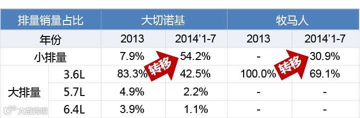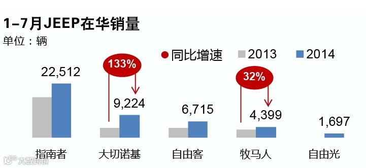 >> 大切诺基、牧马人增速快,但大排量销量占比下降