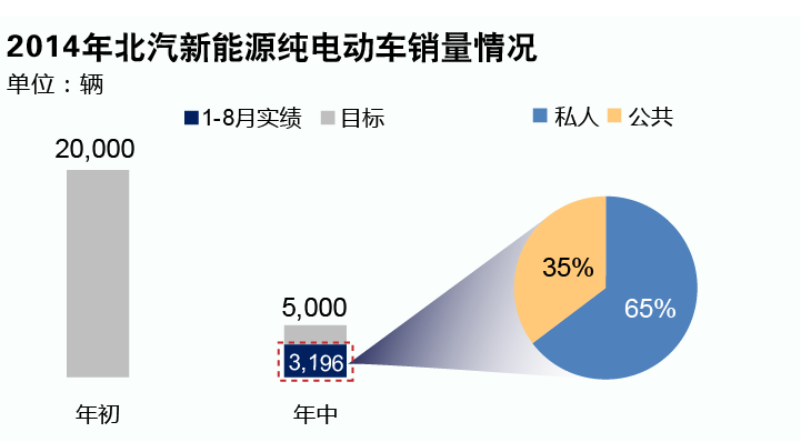 今年年中,北汽新能源将纯电动车销量目标下调至5,000辆,目前已完成了目标的63.9%,其中65%为私人购车。