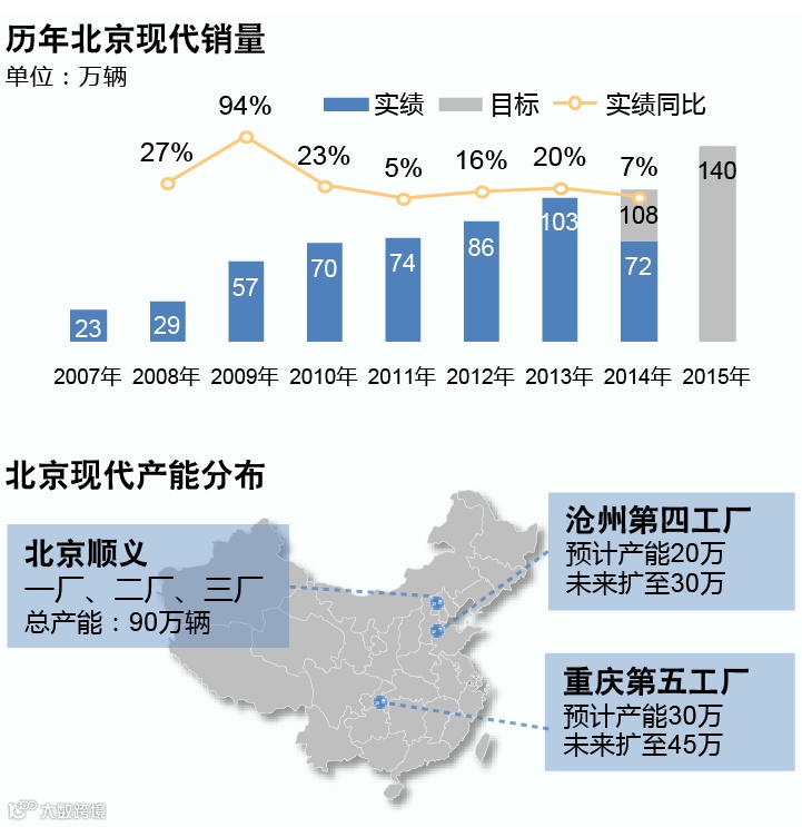 北京现代目前产能仅有90万辆,但2013年销量已达103万辆。受产能制约,今年1-8月销量实绩同比仅为7%,故亟需扩产。