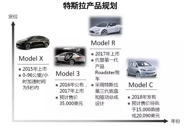 美国电动车制造商特斯拉正在拓展产品阵容,目前,特斯拉有Model S、Roadster两款车,为了满足消费者选择的多样性,计划在2018年前推出4款新车。除之前发布的Model X和Model 3,还将推出敞篷电动跑车Model R和全新入门级电动车Model C。