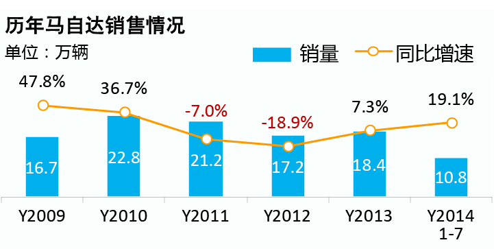 马自达开启了前所未有的在华产品密集投放。在CX-5、阿特兹、昂克赛拉三款“创驰蓝天”车型的带动下,今年1-7月,马自达在华销量达到10.8万辆,同比增长19.1%,逐渐打响了翻身之战。