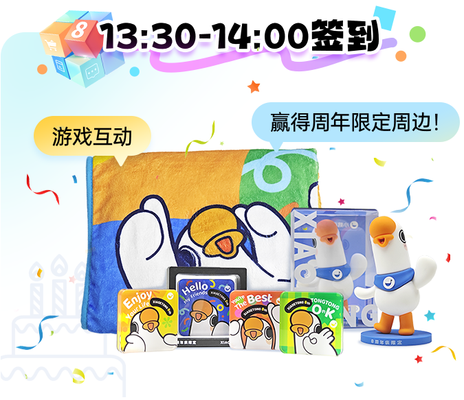 悄悄透露一下,13:30开放签到&互动,玩游戏有机会获得各种新款周年庆周边:定制毛毯、定制手办、定制冰箱贴哟~