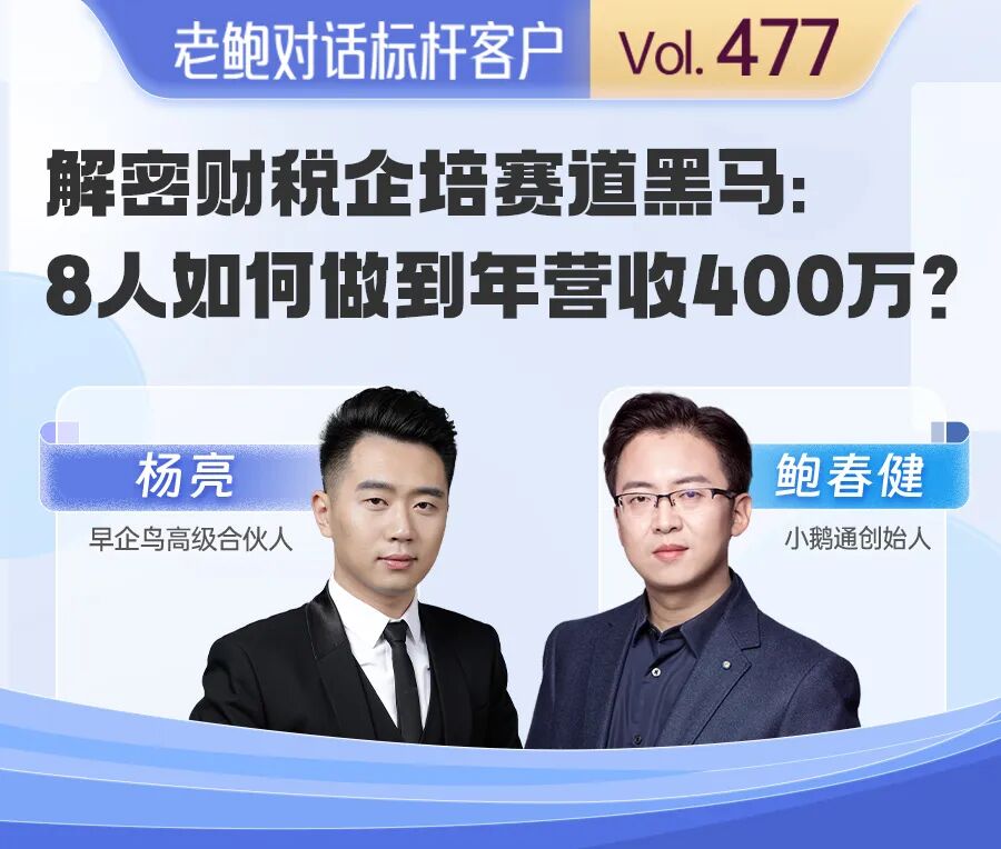 客户介绍:老鲍对话标杆第477期,邀请了早企鸟高级合伙人——杨亮老师