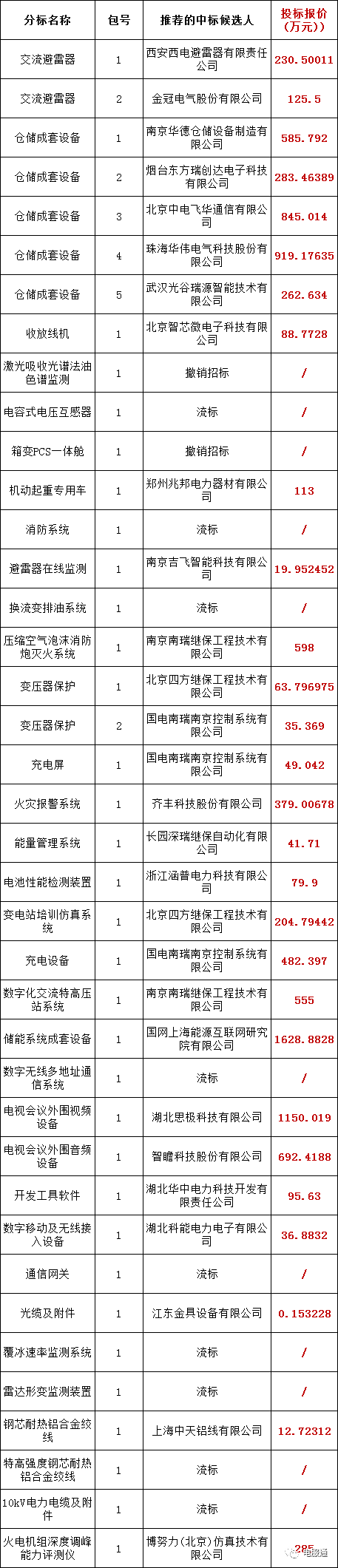 国网湖北省电力有限公司2023年新增第一批物资招标采购评标工作已经结束,依据对中标候选人公示的规定,现将评标委员会推荐的中标候选人予以公示,公示期3日。投标人或者其他利害关系人若对评标结果有异议的,请在中标候选人公示期间以书面形式(传真或扫描件)提出。