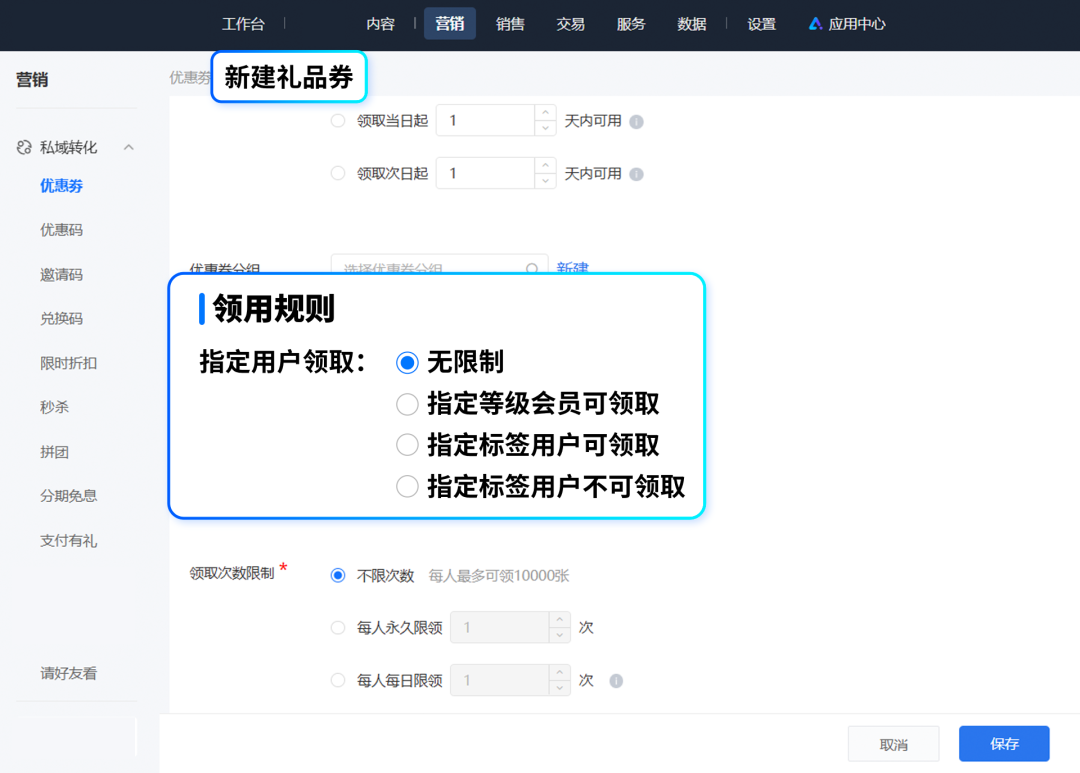 莫慌,多做这一步!在实时互动任务、抽奖、红包、礼品券、专属优惠券、兑换券等营销场景中,提前设置好参与条件。