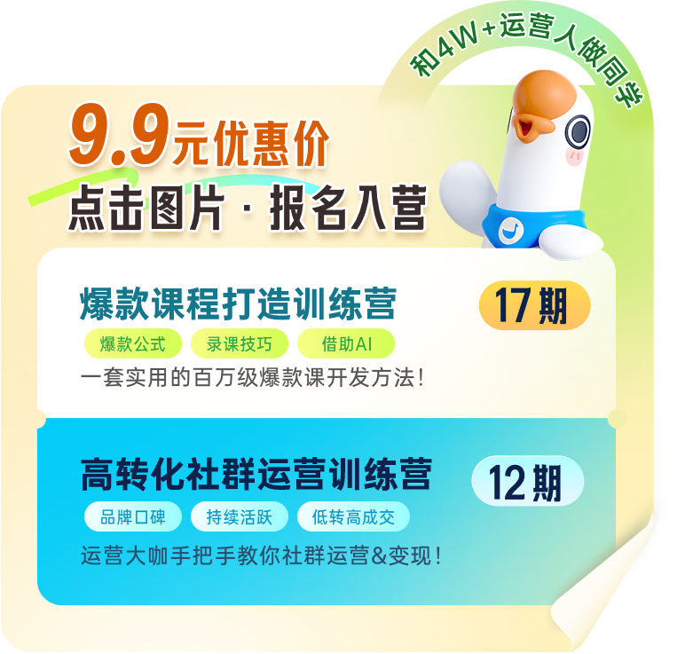 想要进一步了解小鹅通玩法,学习公私域运营技巧提升👇欢迎加入小鹅通官方训练营,get专属学习社群,陪你知识充电、链接资源!