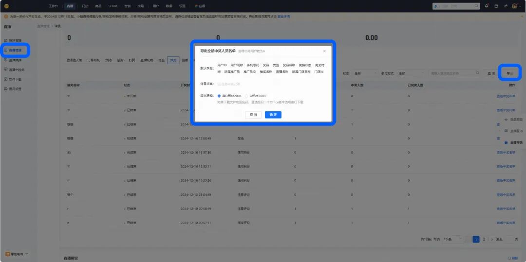 所以在万众期待下!当当当当!!!本次升级小鹅新增了抽奖数据导出与任务奖励数据导出字段。商户朋友再也不用担心数据不能导出的问题啦!