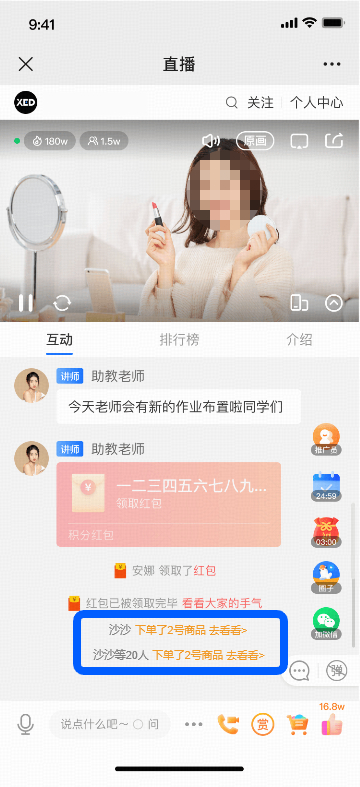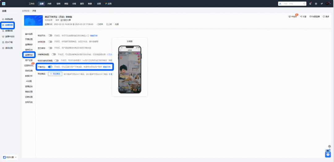 本次升级,我们新增了直播带货场景的【下单评论】。