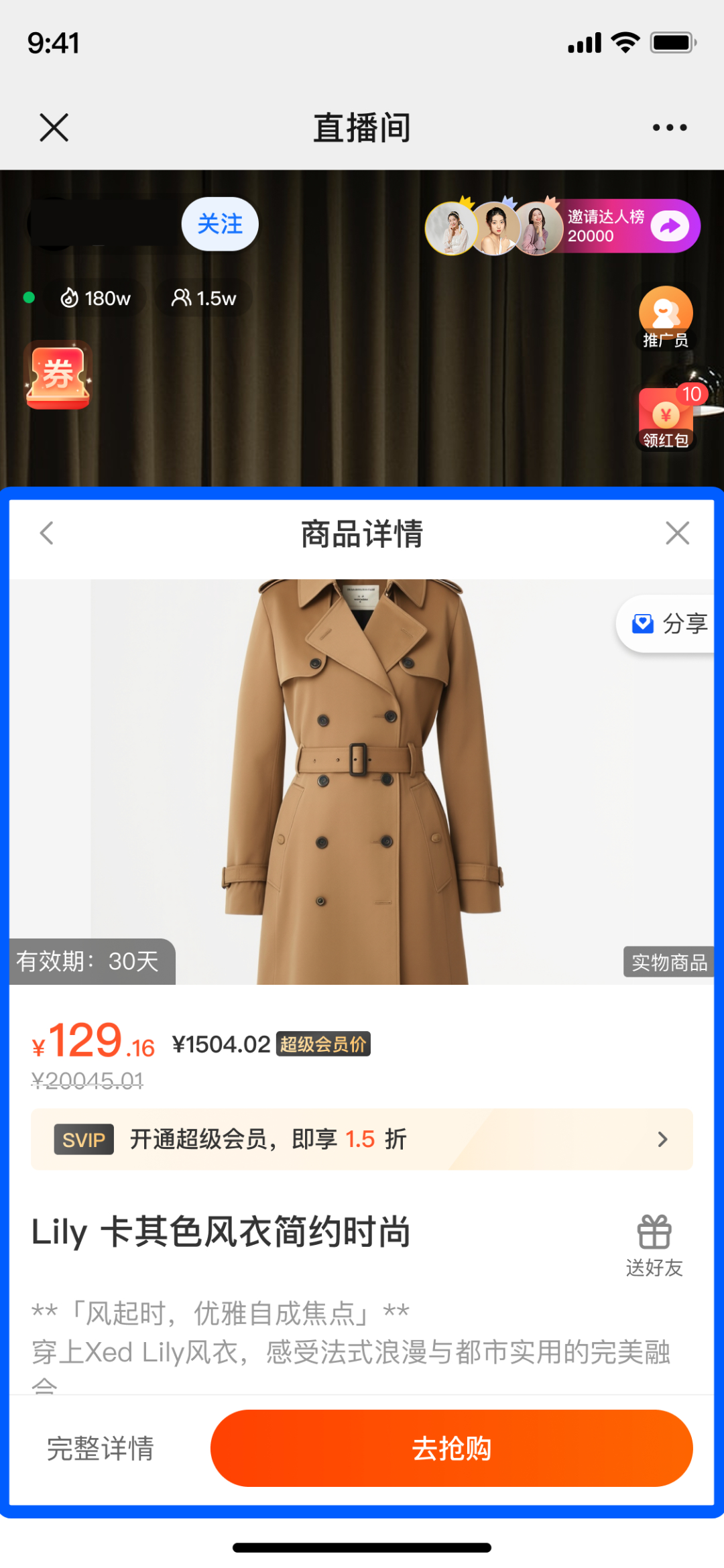 直播带货场景中除了主播讲解与实时弹幕的营销氛围外,用户很难在社交场景中了解其他用户的商品购买情况。现有讨论区,主要围绕用户与主播的问答展开,难以有效链接用户间关于购物的交流。
