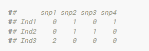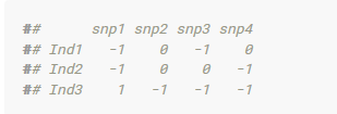 M <- codeGeno(genotypes_gp,reference.allele = "minor")$geno