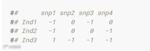 为了便于计算,通常会将M矩阵减1,每个位点等位基因含量变为-1、0、1三种形式。