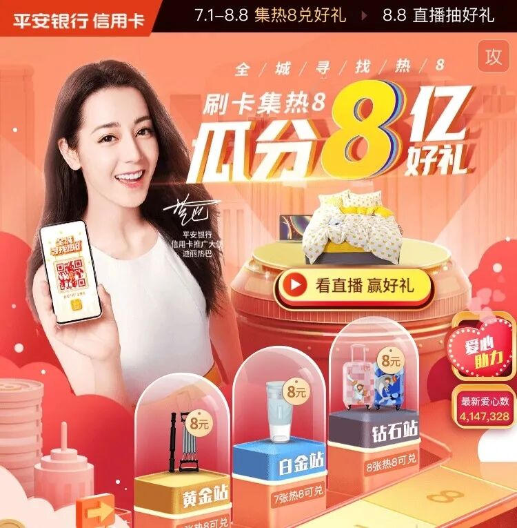 用户可以去平安银行页面玩小游戏,集“热8卡”;也可以去指定的商户消费,换“热8卡”。