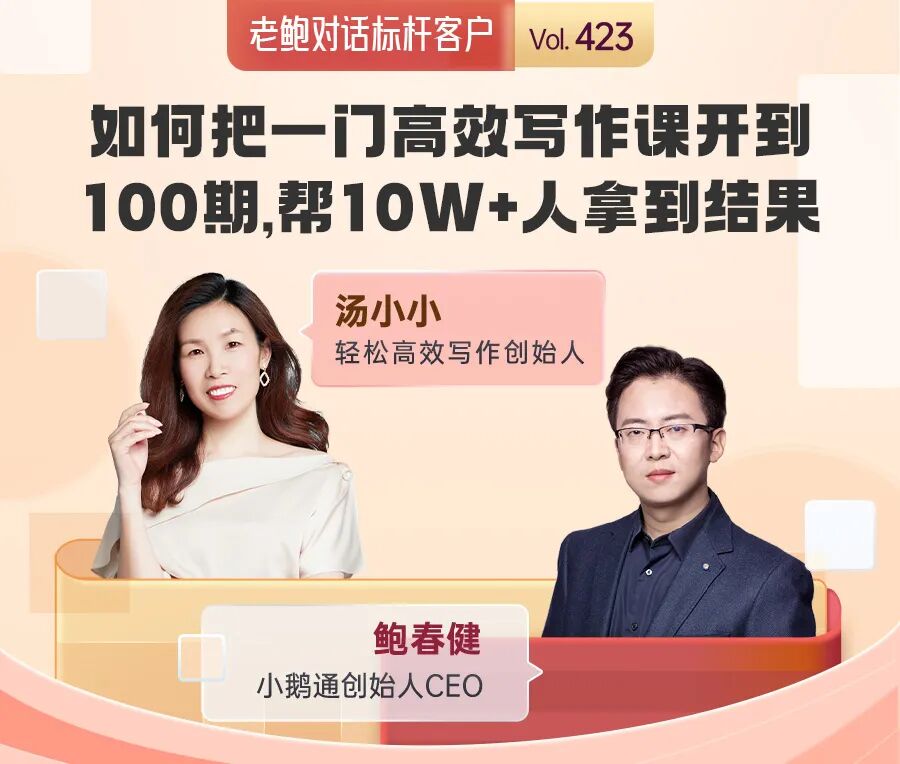 客户介绍:老鲍对话标杆第423期,邀请了轻松高效写作创始人——汤小小老师。