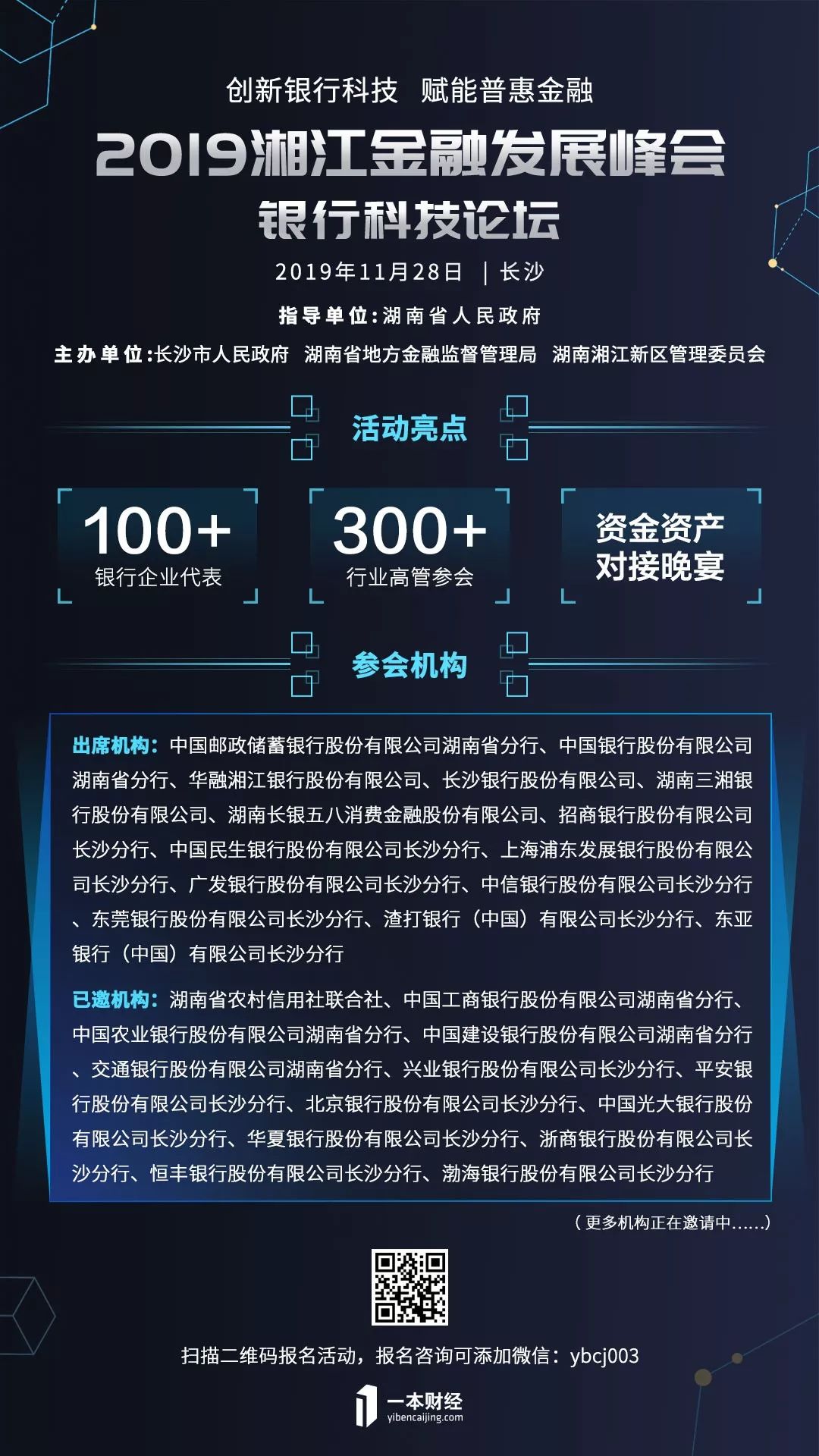■ 11月28日,湘江金融发展峰会银行科技论坛将在长沙盛大召开。