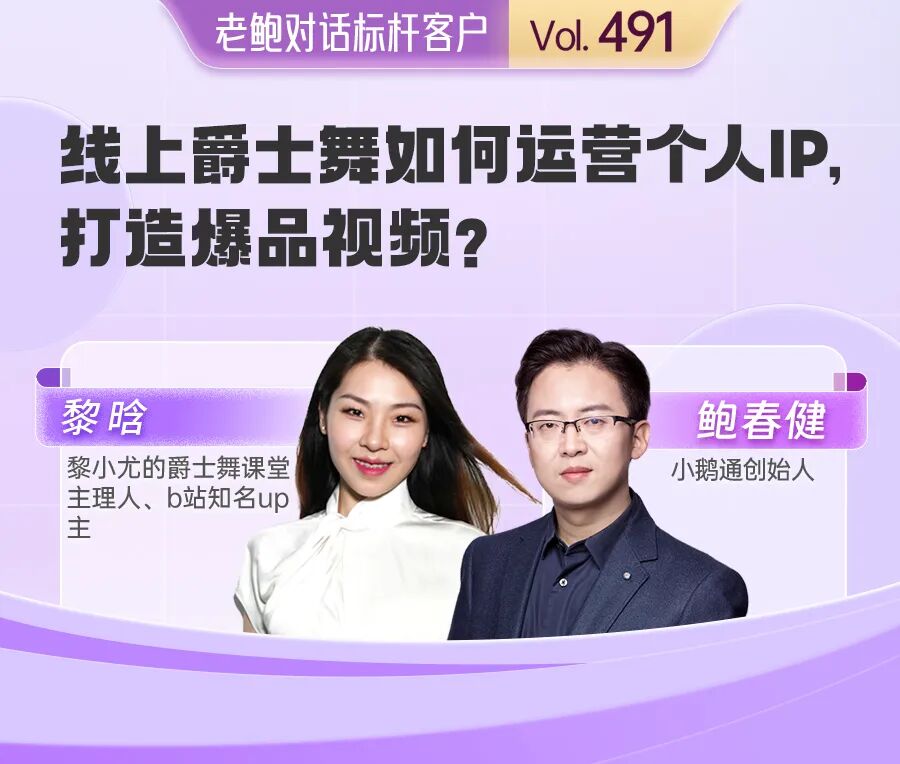 客户介绍:老鲍对话标杆第491期,邀请了黎小尤的爵士舞课堂主理人、b站知名up主——黎晗老师