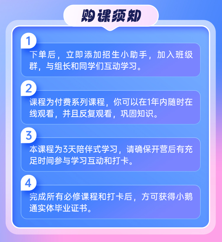 毕业后,还有机会担任小鹅通训练营班委成员!从理论到实践,沉浸式参与体验小鹅通训练营全流程!深度理解掌握训练营底层设计逻辑!