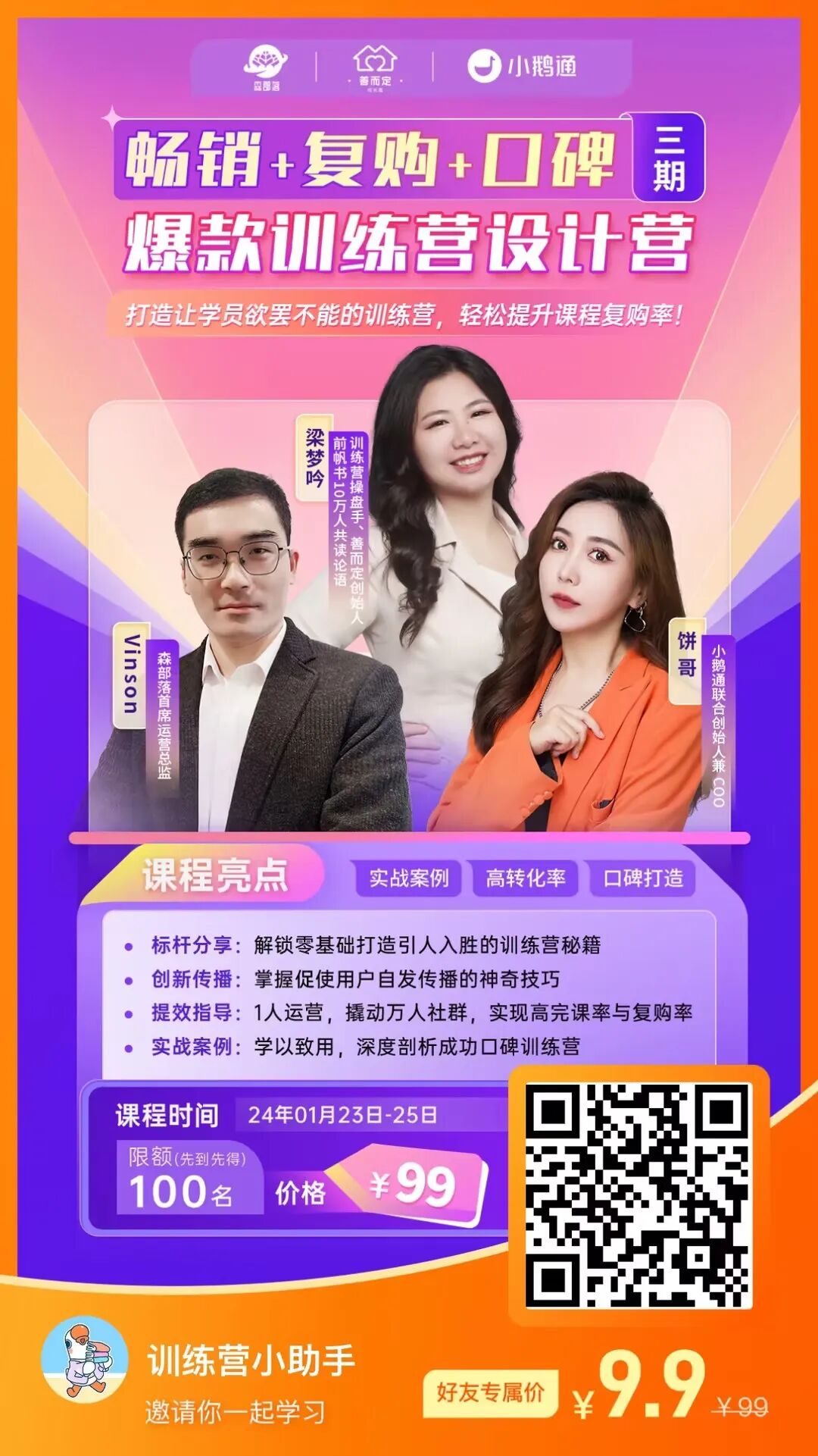 如果你想进一步了解平台玩法、私域运营、AI工具和知识变现,还可以关注小鹅通的各大场景训练营噢。